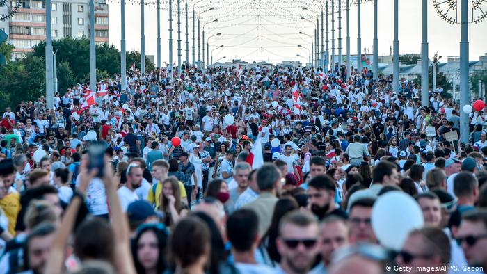 Më shumë se 100 000 njerëz marshuan dje në Minskun qendror, me thirrjen e opozitës, në për fundjavën e katërt radhazi të mobilizimit masiv, pavarësisht nga një dislokim mbresëlënës i policisë dhe ushtrisë në kryeqytet.
